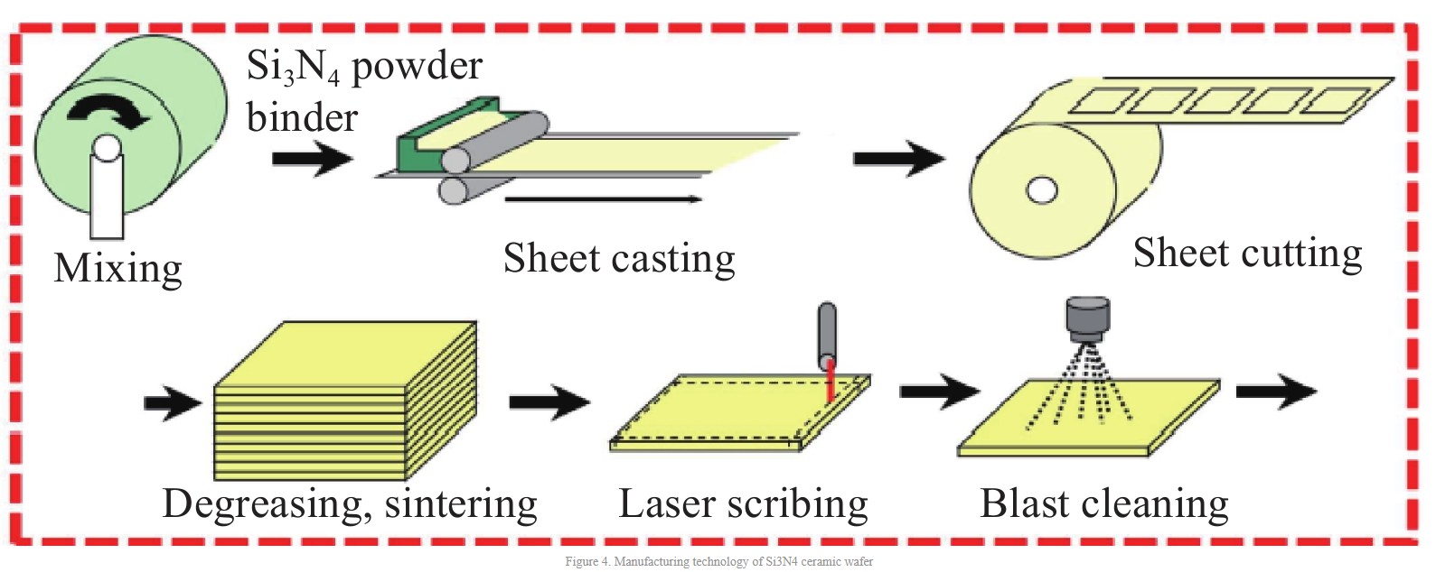陶瓷:AMB和DBC使用的陶瓷材料不同,DBC中使用的陶瓷材料主要有AI2O3和AIN,其中氧化鋁在技術(shù)上比氮化鋁更成熟,在價(jià)格上也有優(yōu)勢(shì),因此市場(chǎng)上80%的DBC都采用了氧化鋁。AMB中使用的陶瓷材料具有較高的導(dǎo)熱性的Si3N4,Si3N4以粉末形式供應(yīng),經(jīng)過(guò)一系列的混合、共混、印刷、成型,可加工成AMB生產(chǎn)所需的陶瓷片。